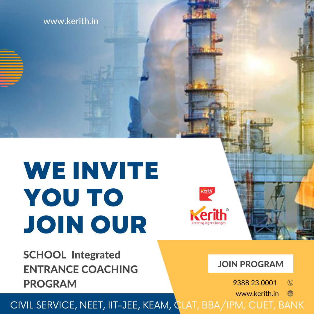 Special Coaching will be offered for various competitive entrance exams including CIVIL SERVICE, NEET, IIT-JEE, KEAM, CLAT, BBA/IPM, CUET, BANK, SSC and other Competitive Exams and Scholarship Tests